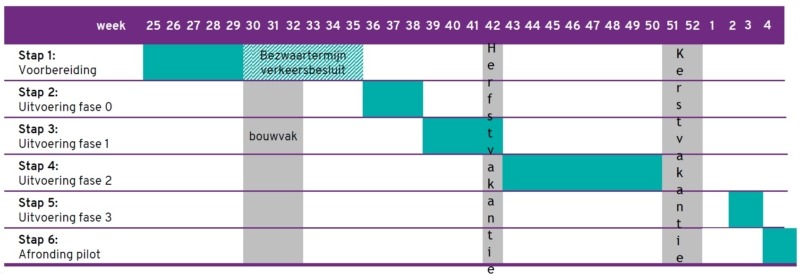 De aanpassingen zijn om te testen of het werkt. Experts kijken voortdurend of de verkeersveiligheid verbetert en vooral of de maatregelen van invloed zijn op de verkeersdoorstroming en daarmee op de aanrijtijden voor het busverkeer. Omdat het tijdelijk is kan de rotonde ook weer snel in de oude staat worden teruggebracht, als dat nodig is. De proef loopt van eind september 2023 tot en met begin 2024. Als blijkt dat het werkt, worden de aanpassingen blijvend gemaakt.